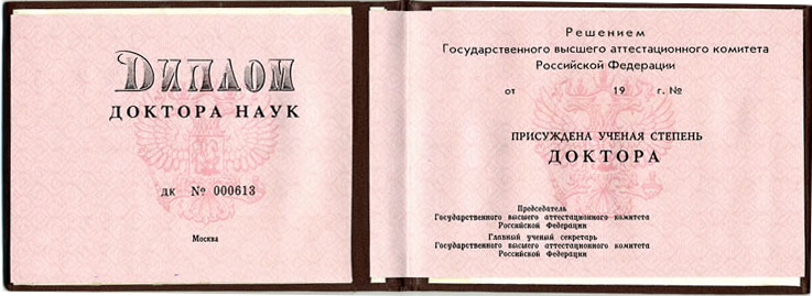 • Направление: любое кроме медицины, например, доктор юридических, математических, психологических, исторических наук и прочее.